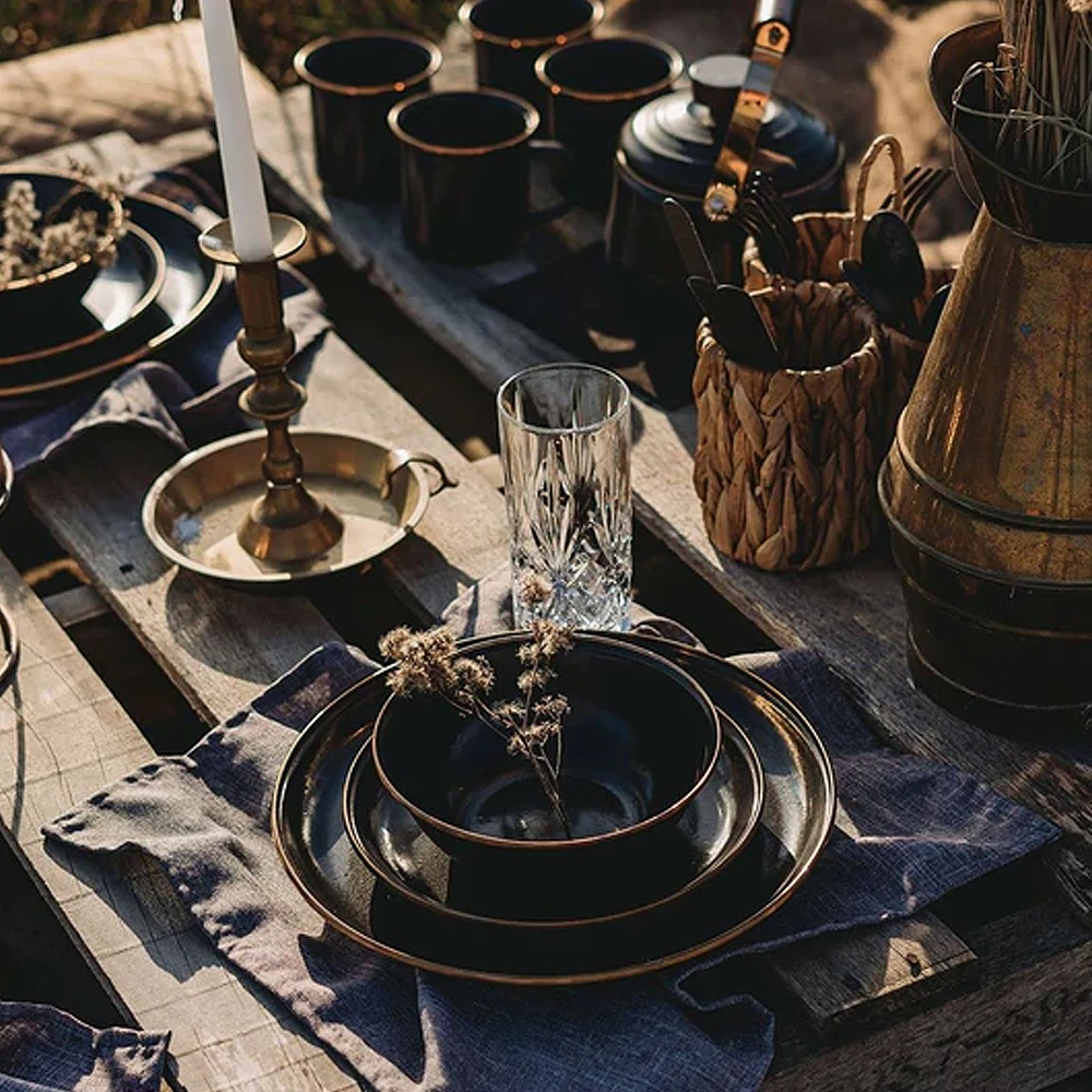The Enamel Bowl Set invokes a classic with a decidedly modern update. Deep enough for soup, cereal, and cobbler a la mode, they’ll be indispensable, sophisticated additions to your table. Each item features a hand-finished baked stainless steel trim creating a copper-like patina finish, resulting in unique pieces that form a cohesive set.