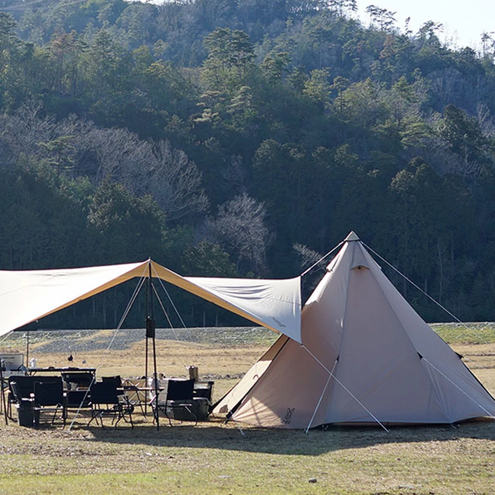 An item for smartly connecting a one-pole tent and a tarp. Since the tent and tarp can be set up close to each other, it is possible to reduce the intrusion of rain into the one-pole tent, which has no sidewalls or front room.