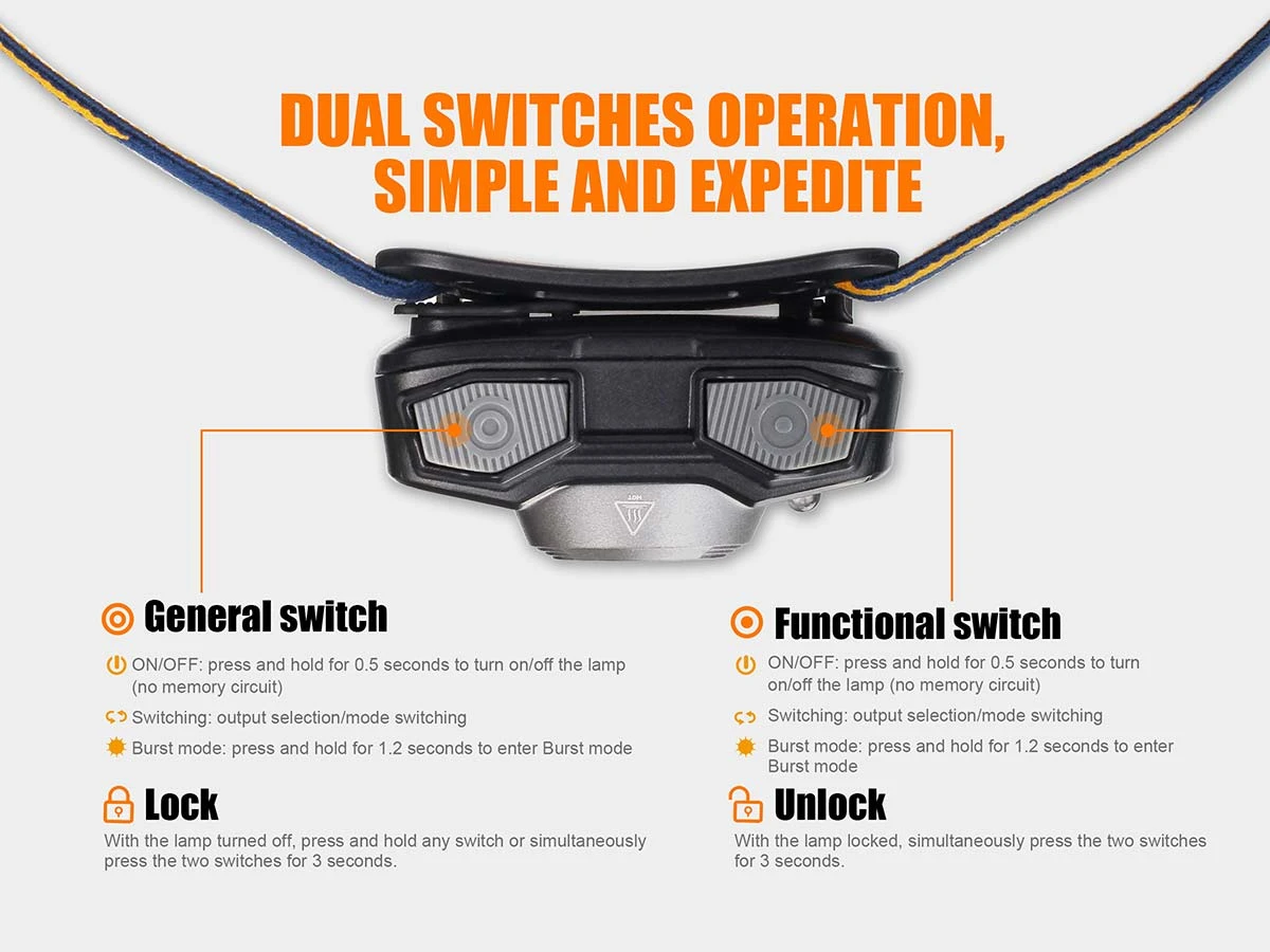 Fenix HL32R LED Headlamp 600 Lumen -Stanley Store HL32R Headlamp Switches