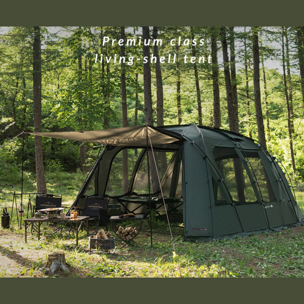 This is a premium large-scale living-shell tent that always provides a spacious and comfortable space. A zero-lux system with low light transmittance can be applied to the inner tent to provide a comfortable sleep when used. The roof has a black pigment coating with excellent light blocking properties. Dense and sturdy mesh windows are applied for smooth ventilation. You can always enjoy a pleasant camping life with the side screen that provides a private space.