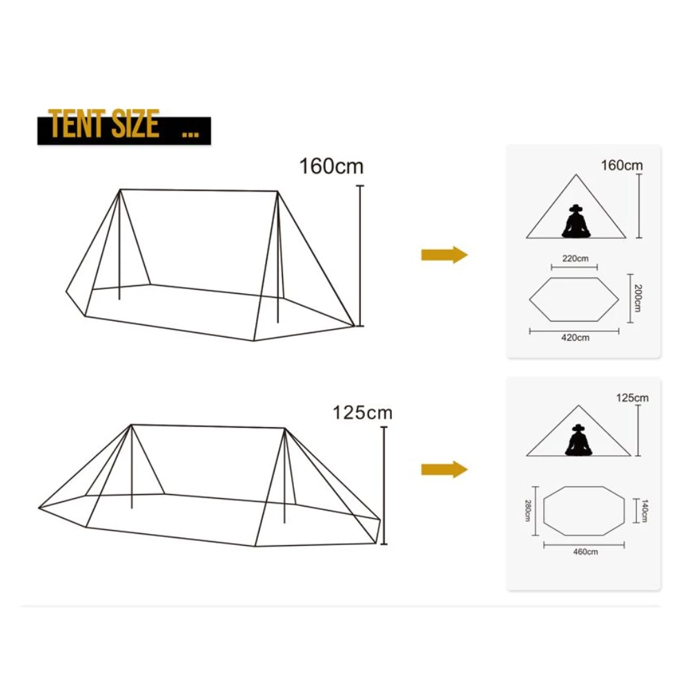 - Erect tent with 5.2ft poles provided, and fasten guy-line to tent peaks to stretch tent.