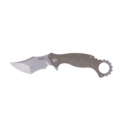 Developed from common Karambit knives, P881 is designed for tactical uses, outdoor uses and rescue uses where strong tip and sturdy edge point matter. As well as most of Karambit knives, there is also a rear safety ring on P881, along with ergonomically shaped and textured G10 handle, offering quite firm grip and comfortable reverse-grip hit. Small and compact, P881 is easy to carry and conceal.