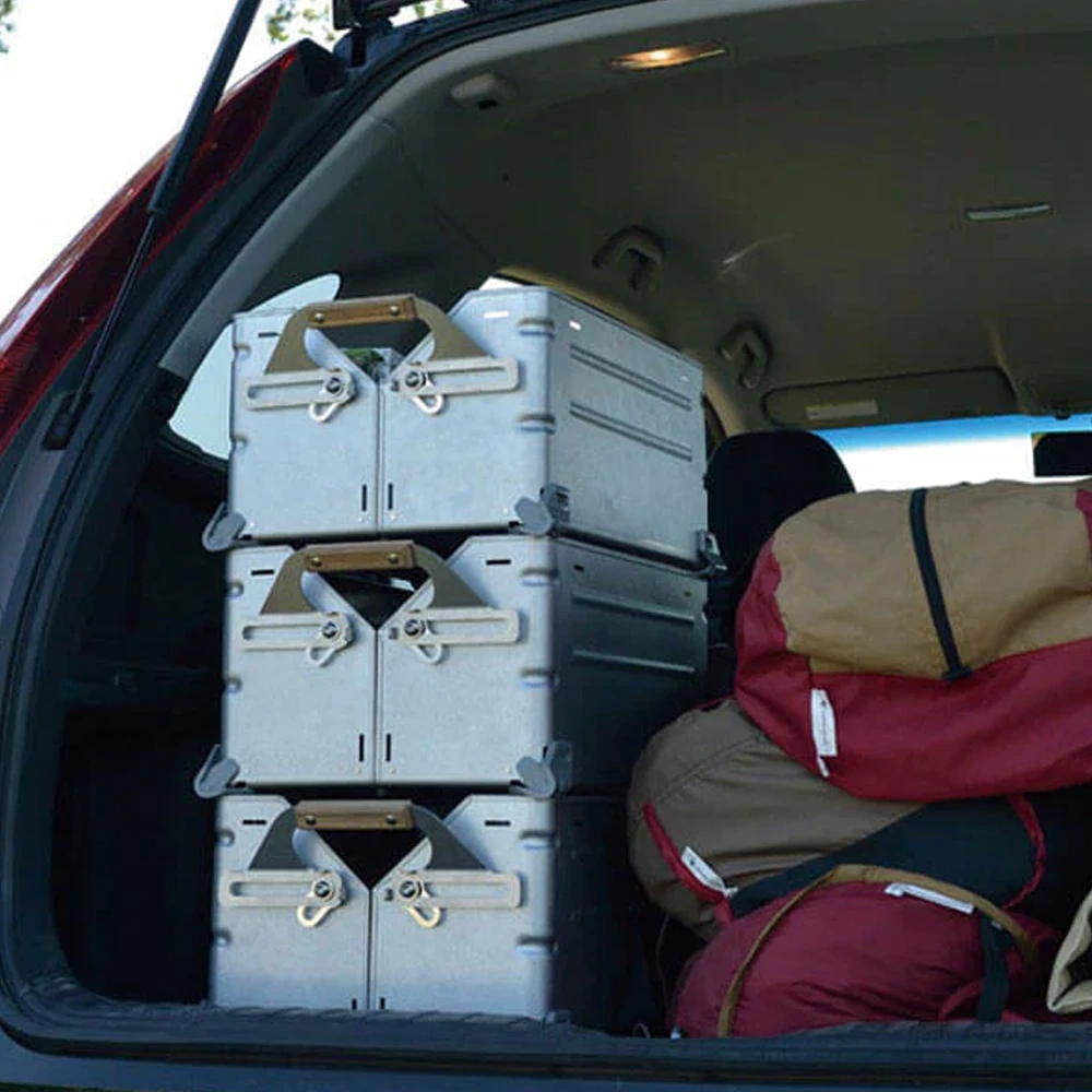 Designed in Japan, the stainless steel Stacking Shelf Container is a versatile storage option. Keep it at home for convenient storage or use it as a grab-and-go option for your camping gear. The Stacking Shelf Container features bamboo handles for extra style and can also fold open to store bulky items such as firewood or blankets. Stack several containers to form a sturdy and durable shelf.