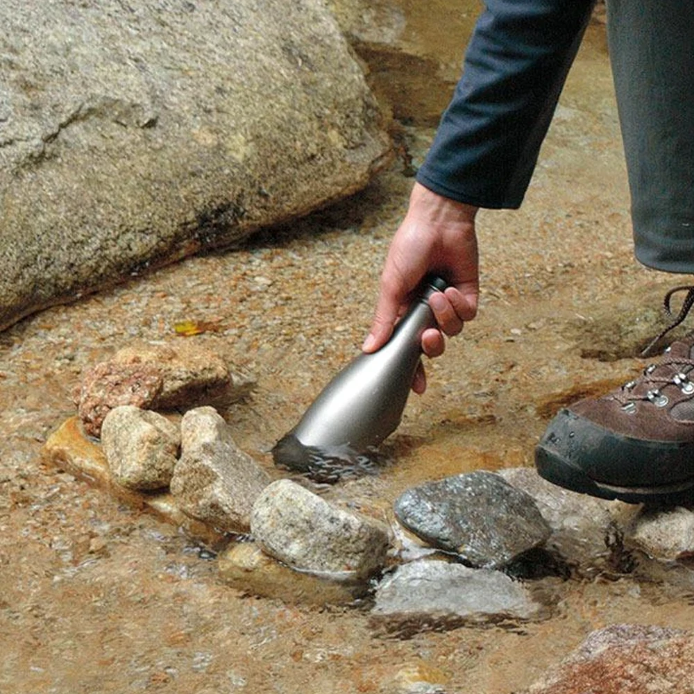 The Titanium Saké Bottle is designed and manufactured in Japan. Use the single-wall bottle to store and chill saké, whether in a mountain stream or bucket of ice. Titanium is inert and offers no flavor residue, so spirits will be perfectly preserved.